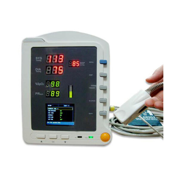 - Visual and audible alarm for Systolic Pressure(SYS), Diastolic Pressure(DIA), Mean Pressure(MAP), SpO2 and Pulse rate(PR), and upper and lower limit of alarm can be set.